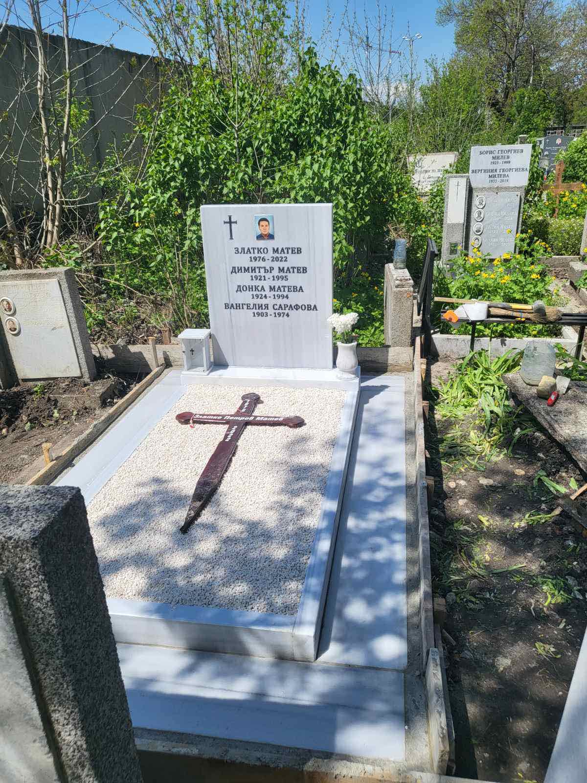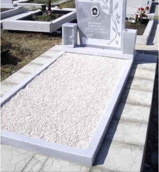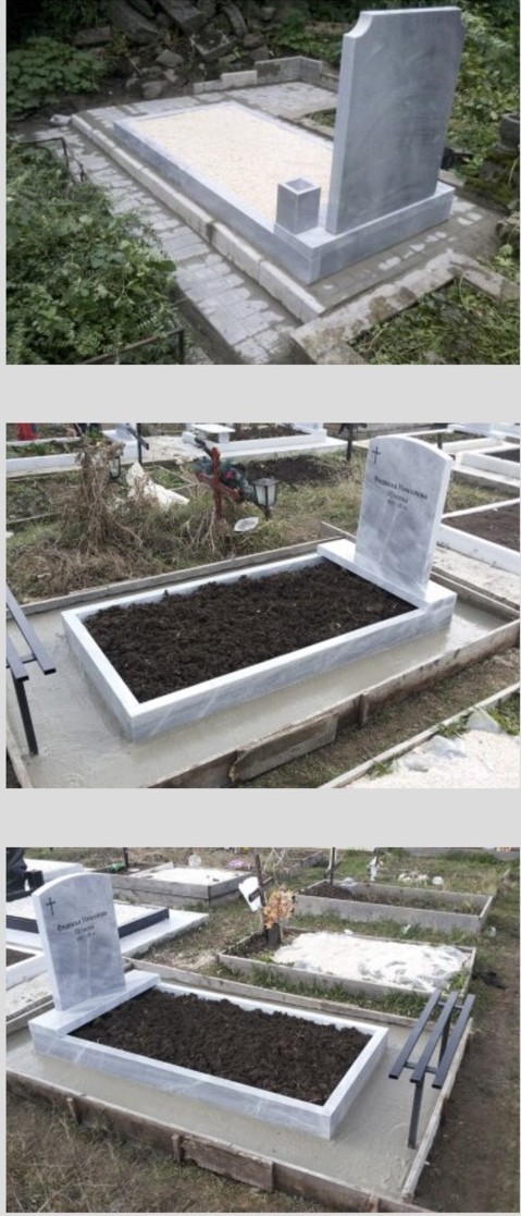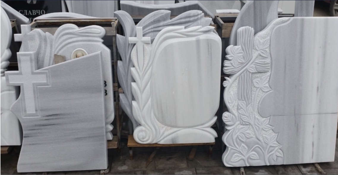 Мраморът е естествен камък, който лесно се обработва. Оцветяването му варира от чисто бяло до всякакви нюанси на цветовете и често е богато фладиран. Той е най-широко използвания материал за изработка на надгробни паметници, поради комбинацията от достъпност, декоративни качества и ниска цена.